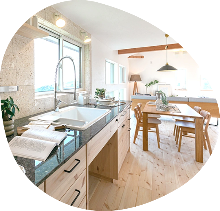 自然素材を厳選し、素材そのものの耐久性を活かした家づくり。化学建材に頼らず、経年劣化の少ない自然素材を用いることで、メンテナンス頻度を抑え、長く安心して住み続けられる長寿命住宅を実現します。適切なお手入れによって、大切な住まいをいつまでも美しく保つことができます。