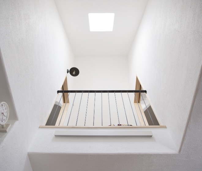 漆喰(しっくい)塗りの壁に無垢のフローリング。